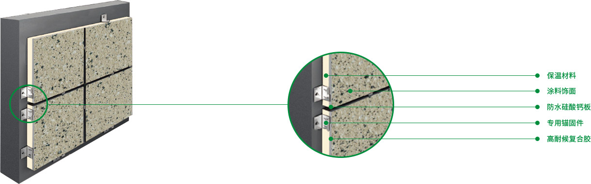 保溫裝飾板相關的保溫板、飾面材料全部自己生產,產品間相容性較好良好的保溫隔熱耐侯性能